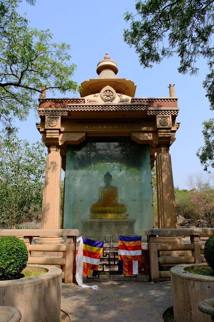 The statue is in a sitting position in a meditating state. Enclosed by glass from four sides and further encircled by stone boundary wall, this type of structure belongs to the times of Ashoka who worked tirelessly to promote Buddhism. This temple is mostly closed for visits and any kind of regular worship or prayers. It is on occasions of Buddha Purnima when there are large number of activities and program organized. You can spend some time in total peace and tranquility which this place offers.