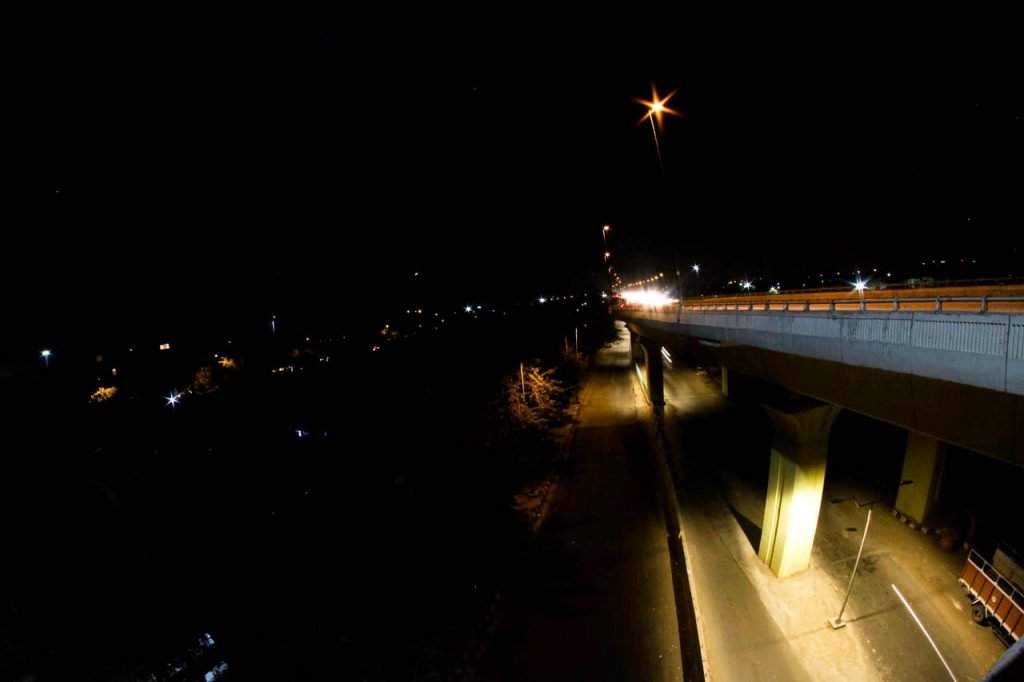 Late night photography on Delhi roads is all about Sodium Vapour lights and asphalt. Sparse and fast moving traffic means you can capture light trails against the inky blackness of the city at night.
