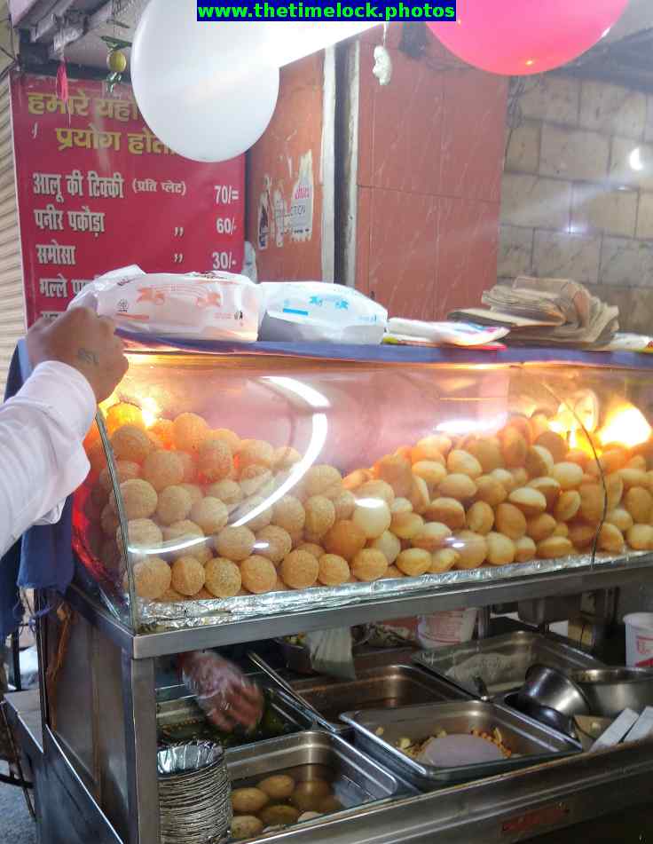 This is the next popular stall, the gol gappa. Mostly people stick to tikkis, but there is also a small crowd at this counter too. Most items are nominal charge. You can have a stomach full snacks for a small amount of money.