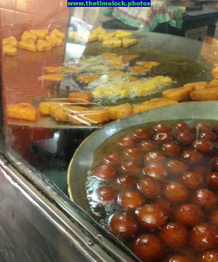 Tikkis are deep fried till they are crisp. They are not fried till brown but come out with a light color. Consistency is very high. And yes, the sweet in the fore ground is the juicy gulab jamun.