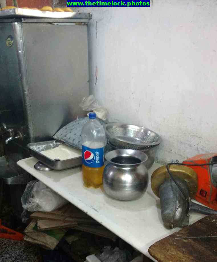 The lassi work station. Also used to prepare other sweet items like rabri.