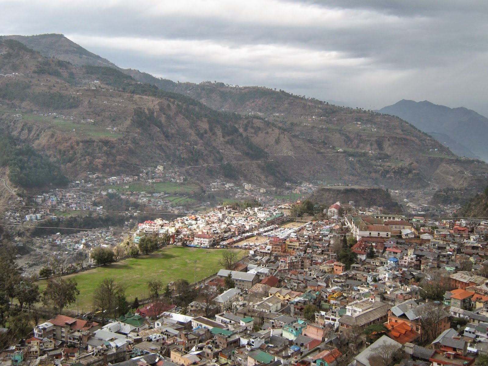 Theme for the week is GrayGray skies and a view of the town of Chamba, Himachal Pradesh, India, from a hill.