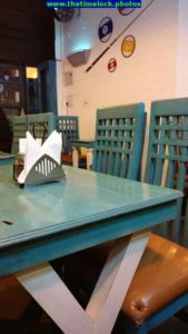 And now finally about the place. The place is not too big. This is bad news because this place is crowded, even on week days. So there is surely going to be waiting during rush hours. A good part of the place is occupied by the monster kitchen. A huge oven dominates the kitchen. Then a table to prepare the pizza and the cash counter. Kitchen proceedings are easily seen through the glass walls. Tables are a mix of tall sofa seating and wooden chairs. The wooden chairs specially give a nice touch to the look and the feel of the place. Perfect settings for pizza time.